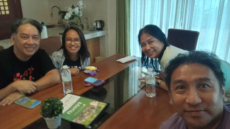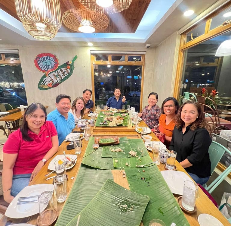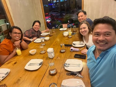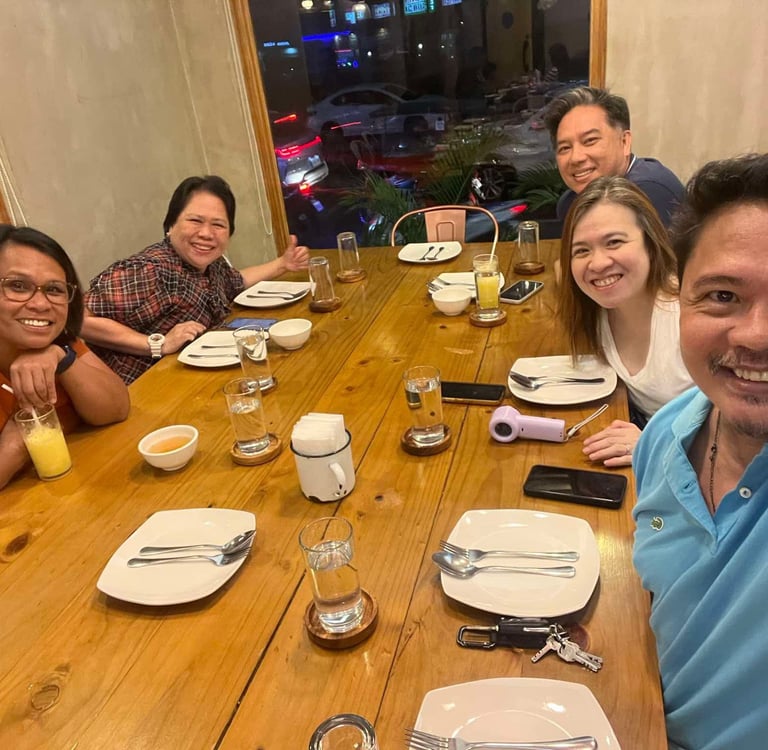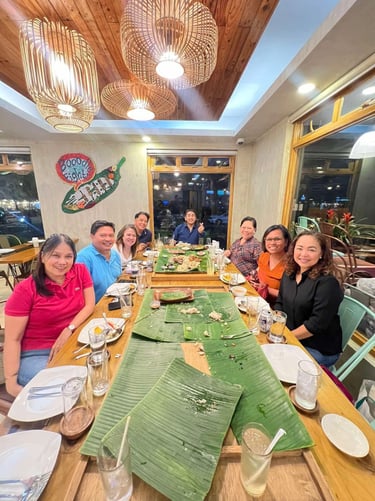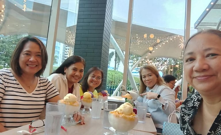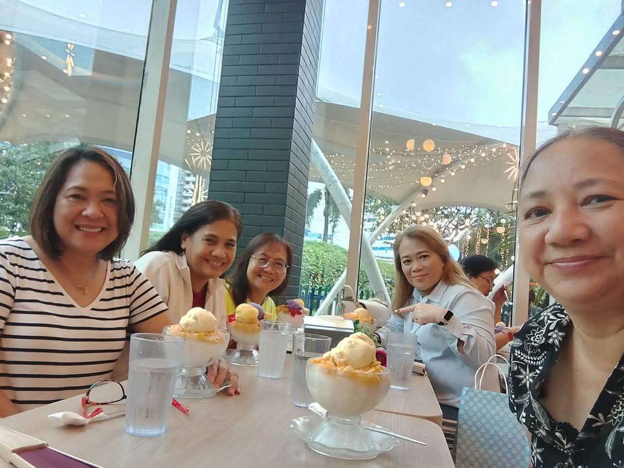 Suzette, Gina, Arlen, Mai and Imelda enjoying some Halo-Halo. Why not?